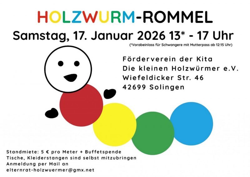 Am kommenden Samstag, 17. Januar, findet von 13-17 Uhr in der Solinger inklusiven Kita „Die kleinen Holzwürmer“ der Rommel statt.