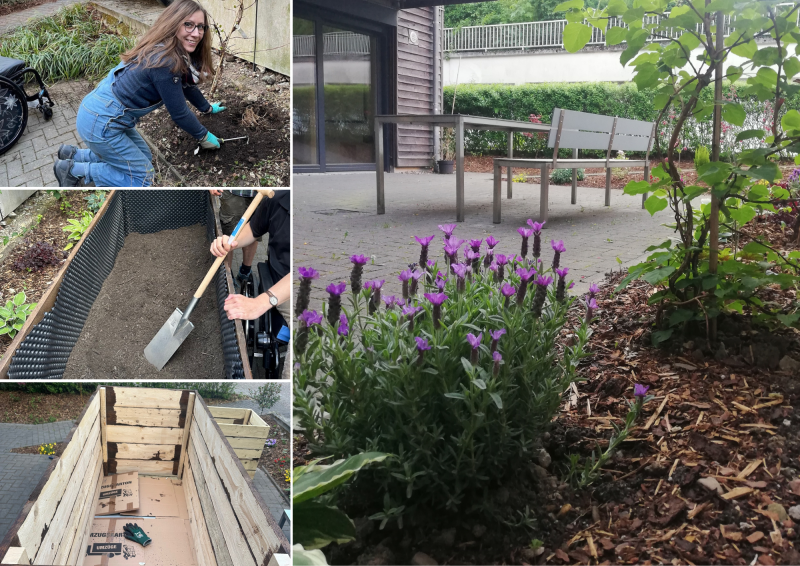 Jeden Freitag wird das Treffen freudig erwartet – es ist längst zu einem festen Bestandteil der Woche geworden: Gemeinsam wird in geselliger Runde gebuddelt und gepflanzt. Schritt für Schritt verwandeln wir die Außenanlage in einen naturnahen Wohlfühlort – mit einer Terrasse zum Verweilen und Beeten voller Leben. Auch diejenigen, die bislang wenig Berührung mit der Natur hatten, machen neue, spannende Entdeckungen: Regenwürmer, Kellerasseln, Tausendfüßler – oder einfach das erdige Gefühl zwischen den Fingern.