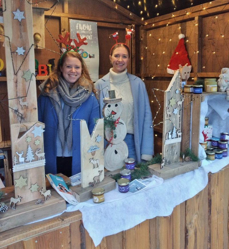 Für unseren Stand in Velbert haben sich die Bewohnerinnen unserer Wohngruppen etwas ganz Besonderes überlegt: sie kreierten einzigartige Dekoartikel in Form von Holzständern mit Stern und Holzschneemännern – eine wunderbare Geschenkidee! Neben der tatkräftigen Unterstützung unserer Mitarbeiterinnen haben auch die Bewohner*innen unseren Stand zum Strahlen gebracht.